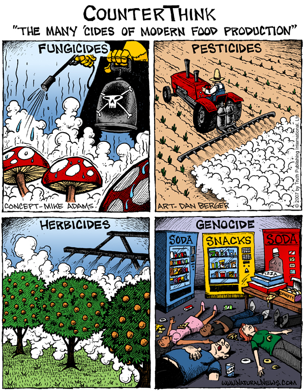 And isn't that exactly what the food corporations are doing to the world right now? Isn't it a form of genocide to intentionally contaminate the public food supply with toxic chemical additives, cancer-causing preservatives, hydrogenated oils, sodium nitrite, MSG, petroleum-based food coloring chemicals and more? Isn't it corporate genocide being committed against the people?