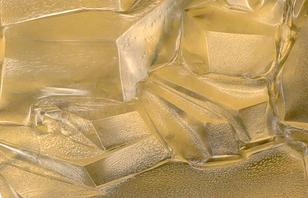 Here's a closer look at one of the edges of a different component. Notice the "noise" in the xylitol crystals apparently emanating from the component's "aura."