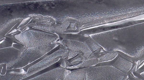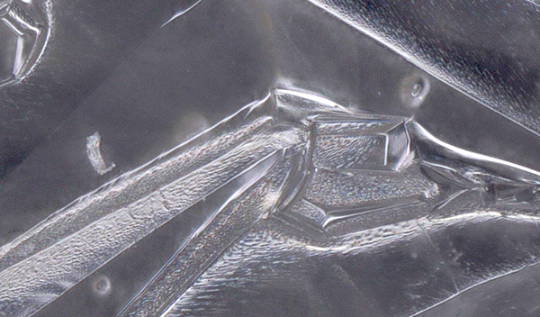 The following photo, taken on the same slide of xylitol freezing on top of electronics components, appears to indicate a broken nerve synapse or a disjointed connection:
