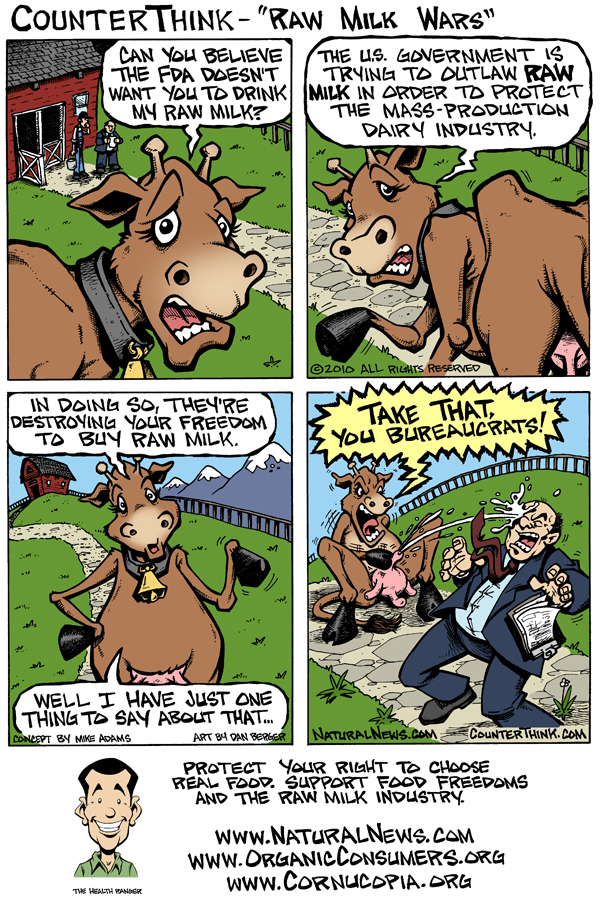 And that's why the cow in my CounterThink cartoon sprays the bureaucrats with raw milk, shouting, "Take THAT, you bureaucrats!"