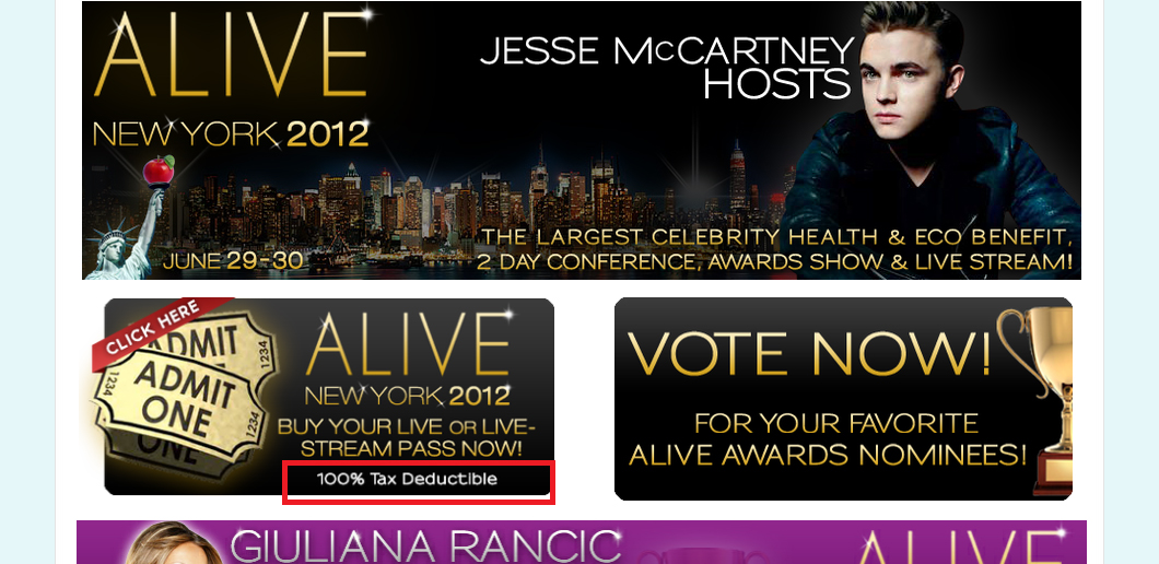 https://www.naturalnews.com/images/alive2012/...Front page of their website, claiming contributions are "100 Tax Deductible"