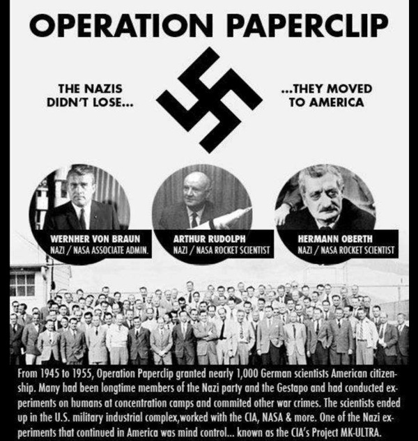 Following World War II, the U.S. Goverment covertly instituted Operation Paperclip, a program of the Office of Strategic Services (OSS) in which over 1,500 German scientists, technicians, and engineers from Nazi Germany and other foreign countries were brought to the United States for employment.