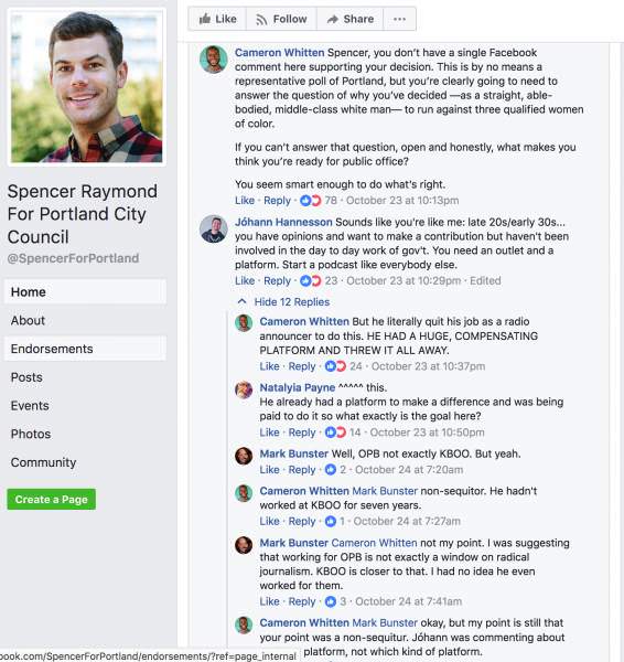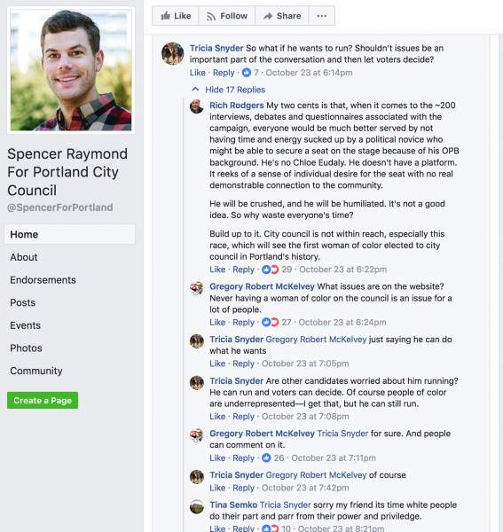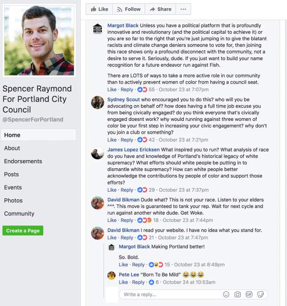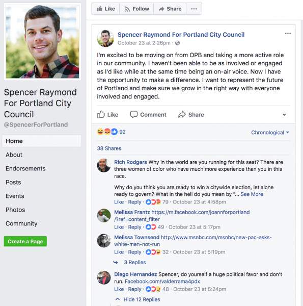 Spencer had been a newscaster for Oregon Public Broadcasting and host of a program called Think Out Loud, which of course towed the line for all the standard wacked out liberal spewage. He quit his job in October and announced his run for city council shortly thereafter. Except the usual Black Lives Matter and Antifa crowd took to his facebook campaign page and unleashed a barrage of mostly racist comments toward him.