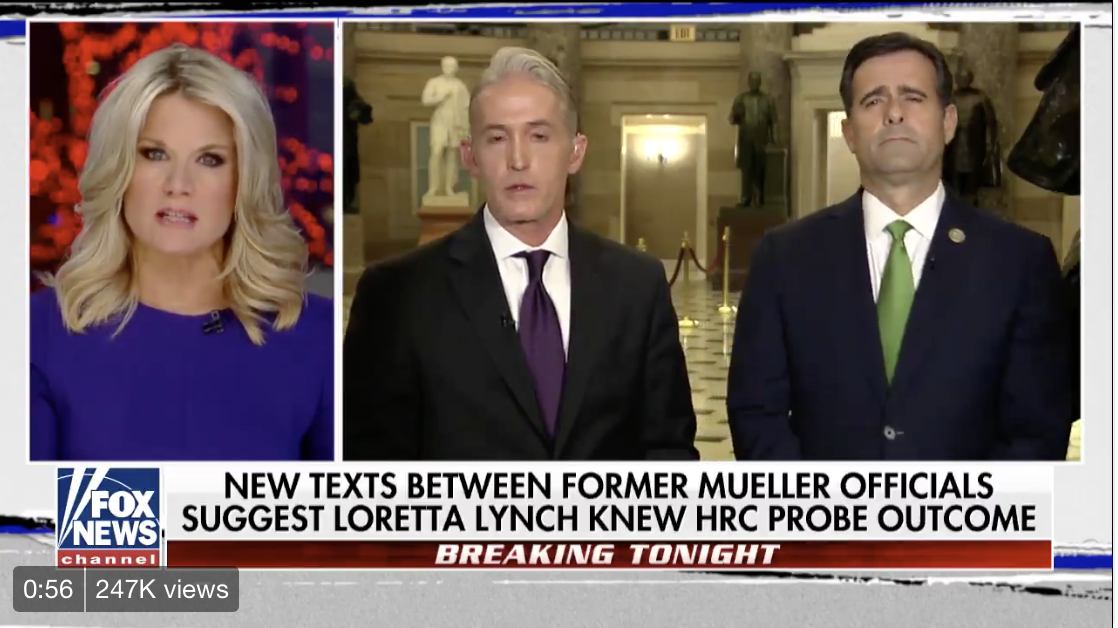 In an appearance with Martha McCallum, Rep. John Radcliffe, along with Rep. Trey Gowdy, R-S.C., said they and their staffs had reviewed some 50,000 text messages between disgraced FBI counterterrorism agent Peter Strzok and his mistress, FBI lawyer Lisa Page that Attorney General Jeff Sessions had made available.