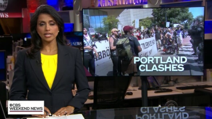 “In Portland, a massive demonstration by a right wing group turned violent,” are the first words out of Reena Ninan‘s mouth during a CBS Weekend News report on the dueling protests.