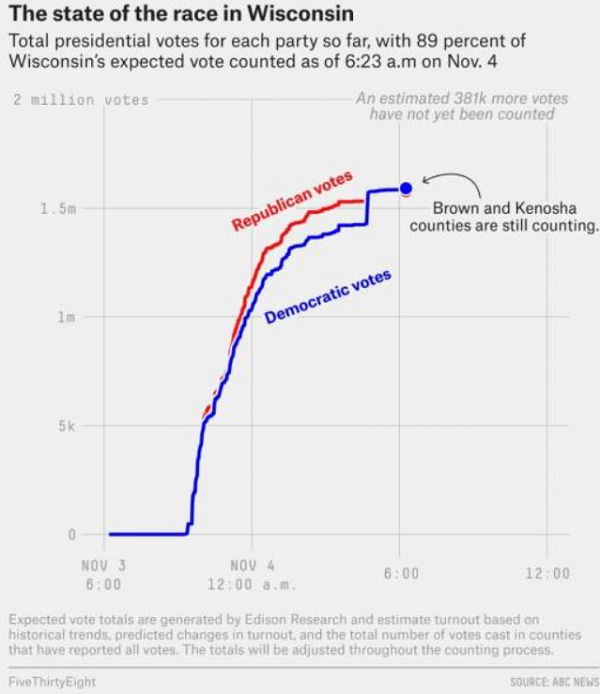 In Pennsylvania, at least one system "glitch" resulted in some 20,000 Trump votes being moved to Biden's category. Once this one is eventually confirmed and fixed, Biden's lead in the state will be cut by 40,000 votes, greatly increasing Trump's chances of winning there.