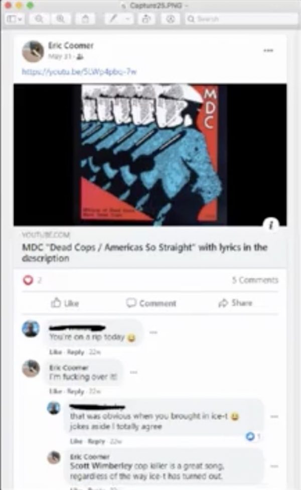 According to Oltmann, Eric Coomer isn't a big fan of the police. During his interview with Malkin, he shared several screenshots of anti-police rhetoric like an image a link to YouTube from the hip-hop song "Dead Prez."