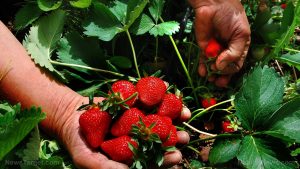 Strawberries are typically ready for harvest over three to four weeks from mid-June when the whole fruit is red.