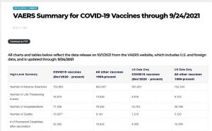 In a "VAERS Summary for COVID-19 Vaccines" report, which includes U.S. and foreign data, deaths by vaccine are updated all the way through the end of September, 2021. The number of life-threatening events caused by Covid vaccines has already passed the same data for all other vaccines since 1990. The number of hospitalizations from Covid vaccines has just about caught up to the same data reported for all vaccinations since 1990.