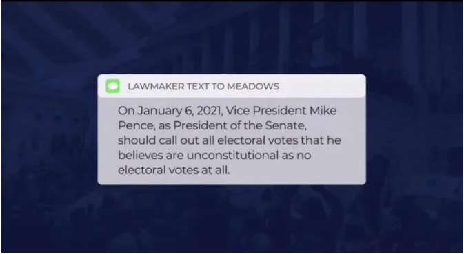 “This one reads, ‘On January 6, 2021, Vice President Mike Pence, as President of the Senate, should call out all electoral votes that he believes are unconstitutional as no electoral votes at all,’” Schiff continued. “You can see why this is so critical to ask Mr. Meadows about. About a lawmaker suggesting that the former vice president simply throw out votes that he unilaterally deems unconstitutional in order to overturn a presidential election and subvert the will of the American people.”