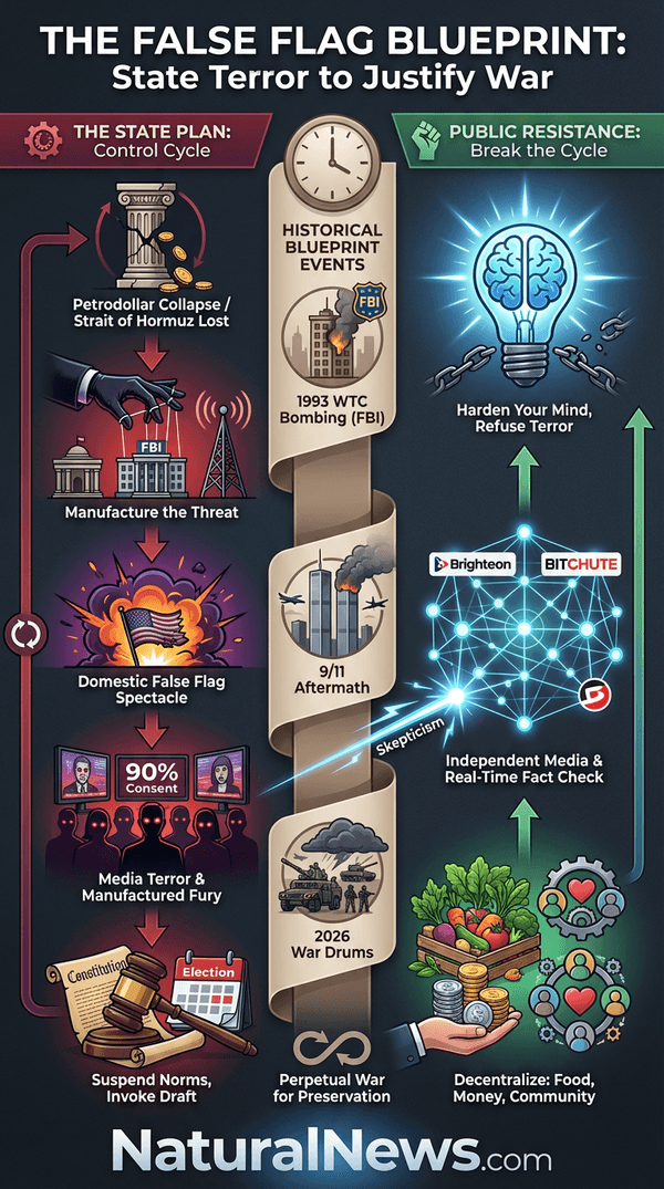 There is, however, a critical flaw in their plan. Unlike 2001, we now live in a decentralized media ecosystem. The official narrative of a terror attack will be challenged in real-time on platforms like Brighteon.social, Bitchute, and through independent analysts. The deep, well-earned distrust in institutions -- the FBI, the corporate media, the Pentagon -- is their greatest vulnerability. A significant portion of the public now knows that, as one article summarized, 'governments all over the world have relied on false flags -- the oldest political trick in the book -- to justify their actions and control populations' [9].