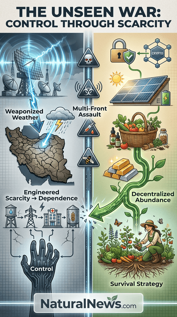 My conviction is that the ultimate goal is not victory over a single nation, but control over all populations through engineered scarcity. The principle I see at work is simple and brutal: Abundance -- free rain, sunlight, fertile soil -- breeds independence. Scarcity breeds dependence and compliance. This is the core strategy of the globalist depopulation agenda. As I detailed previously, globalists are now shifting into their 'kill phase' of human extermination, openly abandoning previous strategies to hide their true intentions [3]. They talk about cutting off energy supplies and causing food shortages to starve people to death.