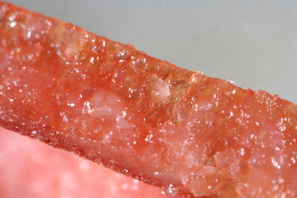Here's a 3.5x magnification of the same outer casing strip of the salami. Note the blobs of fat still attached to the strip, as well as the coloration underneath the fat blobs. If this picture makes you want to run out and eat processed salami meats, you are definitely an adventurous person, in my opinion.