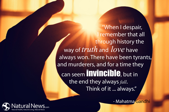 "When I despair, I remember that all through history the ways of truth and love have always won. There have been tyrants, and murderers, and for a time they can seem invincible, but in the end they always fall. Think of it... always."