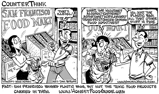 And yet, as I'm pointing out in this article, isn't it interesting how easy it is to ban plastic bags that are dangerous for the environment but how difficult it is to ban chemical food ingredients that are dangerous to human health? The reason behind this, of course, is that plastic bag companies have a terrible lobby, but big food giants practically run Congress and government regulators like the USDA and FDA.