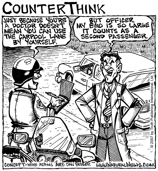 Doctors' egos are so massive that if you are unlucky enough to find yourself in their presence, you can actually feel the bending of spacetime around them, distorting all reality and scientific understanding into the "conventional medicine" bizarro universe. And in this distorted reality, everything that's real in the rest of the world is suddenly reversed. Vitamins will kill you, pharmaceuticals will save you, the human body has no nutritional requirements whatsoever, and as long as you keep screening for cancer every year, there's no real need to try to actually prevent it. Don't worry, medicine will save you. (And please ignore the fact that every single bill you get from the hospital is chock full of mistakes. They know what they're doing with everything else at the hospital. Honest.)