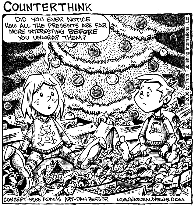 Of course, most adults have hopefully figured out that Christmas is not about the stuff anyway. But they still buy the stuff, wrap the stuff, give the stuff, receive the stuff and eventually throw away the stuff anyway, all while claiming, "It's the thought that counts!" So then why don't people just leave THOUGHTS under the Christmas tree? For a population that claims to be focused on the "spiritual" side of Christmas, there sure is a lot of STUFF changing hands.