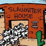 | 3/1/2007 - This is another cartoon in the "Planet of the Cows" CounterThink sub-series. The origins of this cartoon are somewhat interesting: Following the release of research in late 2006 linking red meat consumption... |
